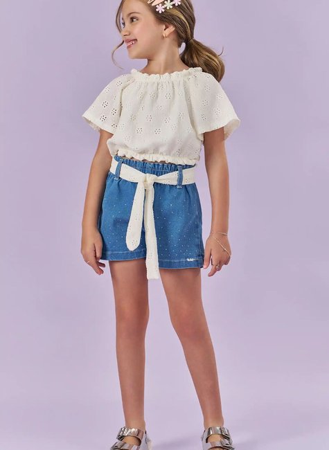 Blusa em Laise e Shorts Jeans Menina-KUKIÊ