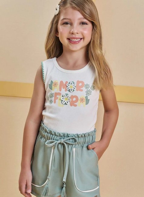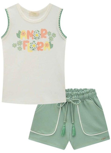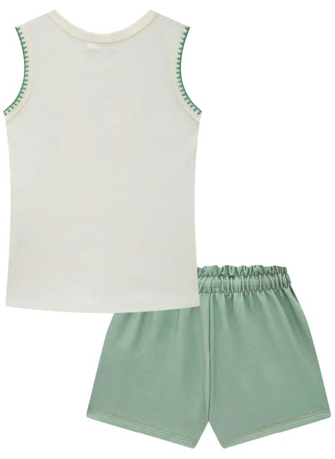 Blusa Regata com Bordado e Shorts Verde Flora -INFANTI