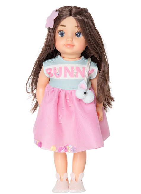 A Boneca Martina é pura delicadeza! Com 37 cm de altura, ela veste um lindo vestido rosa em tule que esbanja charme e modernidade. Seu look fica ainda mais encantador com a bolsinha em formato de coelhinho e os sapatinhos com orelhinhas, que deixam a produção divertida e especial.
