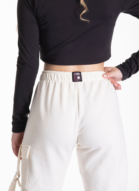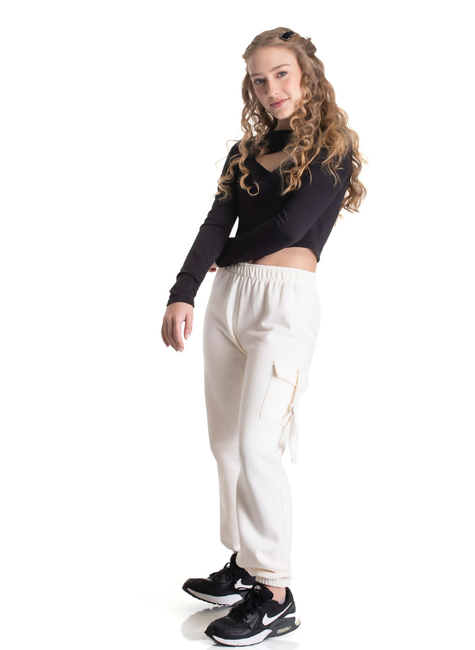 Seja para um dia na escola, um passeio descontraído com os amigos ou um momento de relaxamento em casa, esta calça cargo em moletom off-white é a escolha perfeita para a adolescente que valoriza tanto o estilo quanto o conforto em seu guarda-roupa!