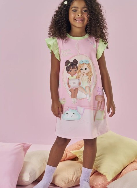 A camisola em meia malha, prepara as meninas para o verão com muito estilo e conforto! Disponível em uma cor super estilosa - rosa - esta camisola é perfeita para os dias quentes e cheios de aventura. A sublimação divertida e o patch interativo, adicionam um charme especial à peça.