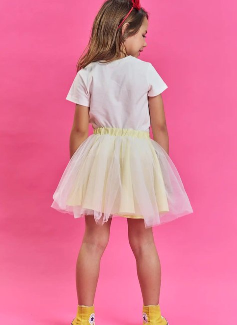 Saia amarela rodada em tule leve e delicado
