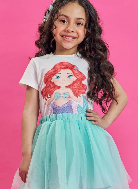 Conjunto Blusa e Saia de Tule PRINCESA ARIEL - Kukiê