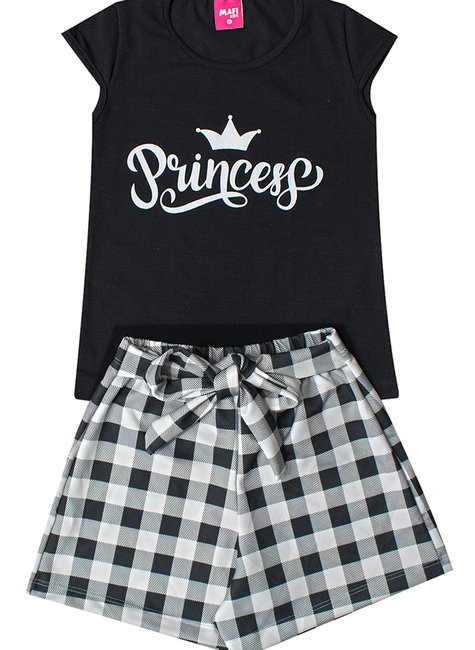 Conjunto Infantil "Princess" com Shorts Xadrez – Elegância e Charme