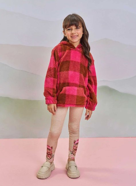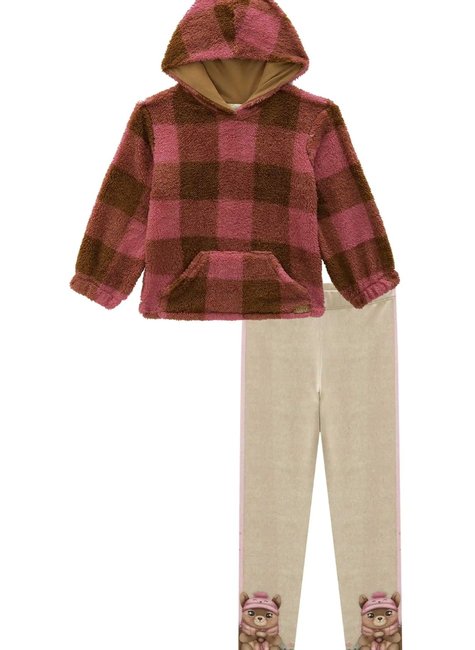 Conjunto Infantil Infanti – Blusão em Pelo Xadrez com Capuz + Legging com Ursinha
