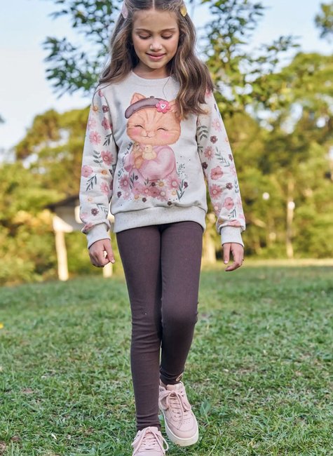 A blusa em moletom possui estampa exclusiva com acabamento refinado, mangas longas e punhos ajustados, proporcionando conforto térmico e ótimo caimento. A legging é confeccionada em malha macia com elasticidade, garantindo liberdade de movimentos e ajuste perfeito ao corpo da criança.