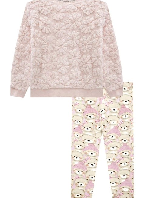 Conjunto de blusão em pelo flores e legging em termoskin Bebê Menina Kukiê Prepare-se para derreter de amor com o Conjunto Infantil Feminino Kukie Baby, uma peça encantadora, quentinha e cheia de detalhes fofos para deixar sua bebê confortável e estilosa nos dias frios! Possui um rosto bordado de ursinho com orelhinhas 3D, um detalhe lúdico e encantador que traz ainda mais fofura ao look. Com um toque delicado e aconchegante, esse conjunto é composto por um blusão de pelo com textura floral na cor rosa claro e uma calça legging em malha térmica termoskin, que mantém o corpinho da bebê aquecido sem abrir mão do estilo. Para um look ainda mais quentinho, combine com botinhas de pelúcia ou meias fofinhas.