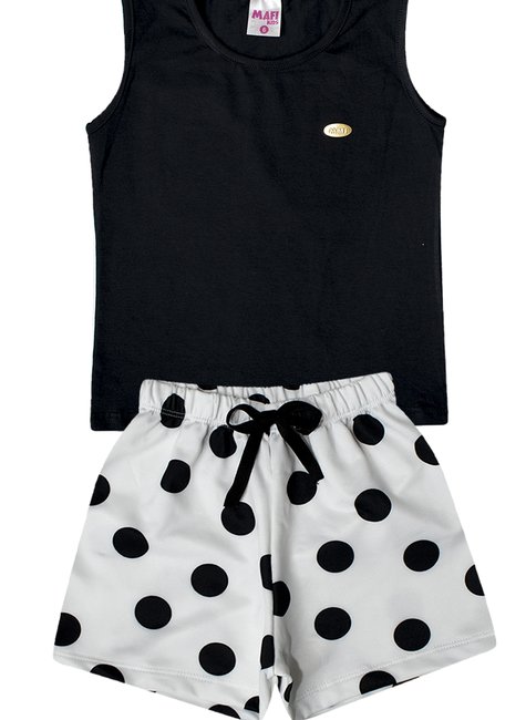 Este lindo conjunto é perfeito para os dias quentes e cheios de diversão! Composto por uma regata preta e um shorts branco com estampa de bolinhas rosa, ele é a combinação ideal de conforto e estilo. O shorts possui elástico na cintura e um charmoso laço decorativo, garantindo um ajuste perfeito para as meninas.