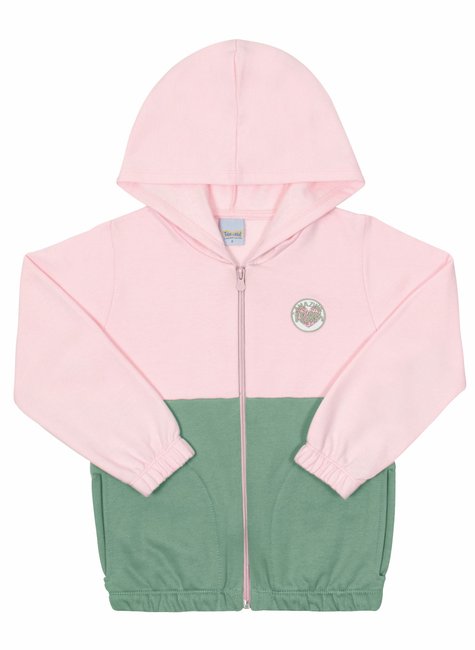 Moletom Felpado com Touca e Zíper | Rosa & Verde Claro