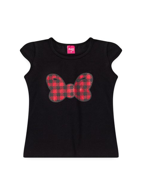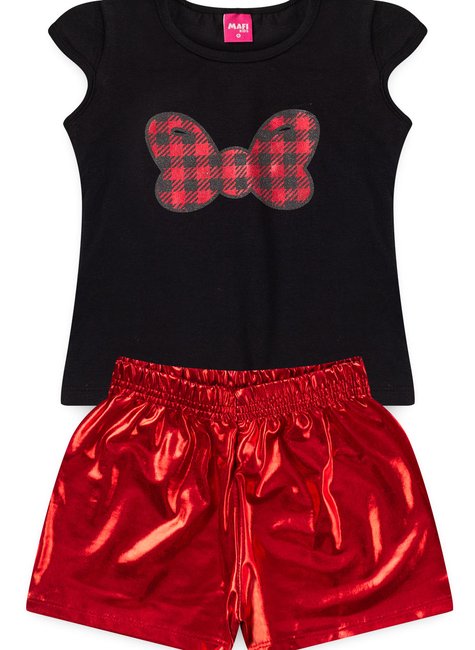 Blusa: Em tecido macio, com manga curta e um charmoso laço xadrez vermelho estampado no centro, que adiciona elegância e estilo ao look.