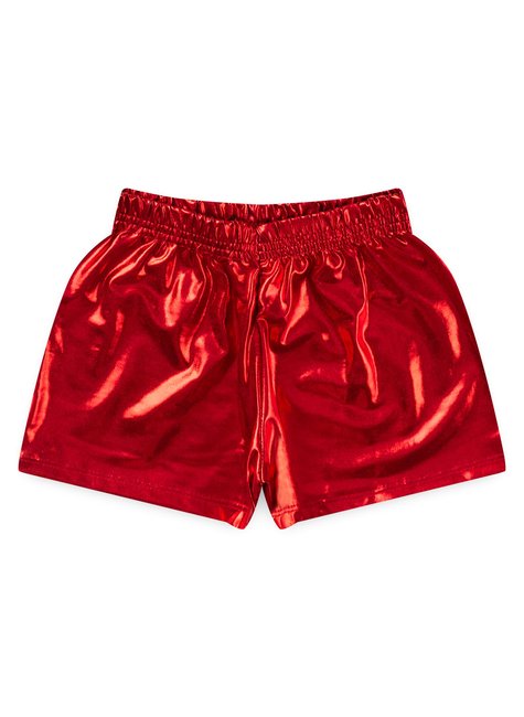 Shorts: Feito em tecido com acabamento brilhante na cor vermelha, possui cós elástico para maior conforto e ajuste perfeito. O material oferece um visual moderno e diferenciado.