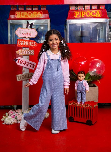 👯♀️ Versão para a boneca: E para deixar tudo ainda mais encantador, o look vem com a versão igualzinha para a boneca — porque brincar de se vestir igual é parte da magia que a gente nunca quer perder. ✨