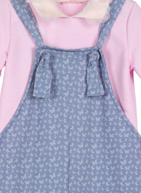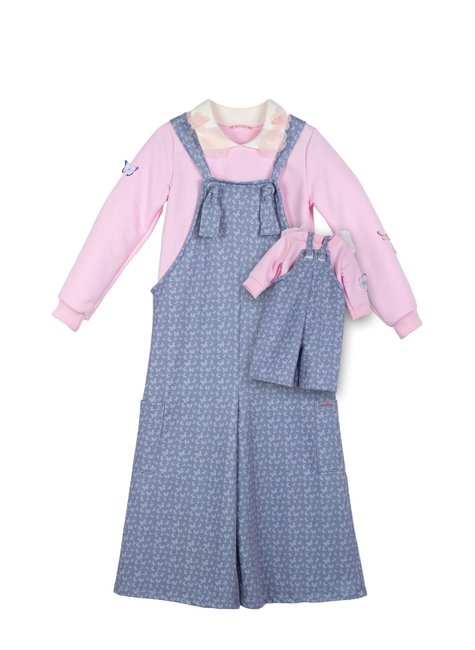 🩵 Jardineira: Em malha sarjada leve com estampas de borboletas e com caimento amplo, a jardineira tem um visual super wide que é tendência e garante liberdade total para brincar com estilo. O ajuste das alças é feito com um nó delicado e funcional, e o bolso lateral com plaquinha personalizada Marthiê finaliza com charme.