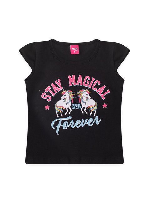 Apresentamos um conjunto mágico que vai encantar sua pequena! A blusa preta, confeccionada em um tecido macio e confortável, é adornada com uma estampa vibrante de unicórnio, trazendo um toque de fantasia e diversão ao look!