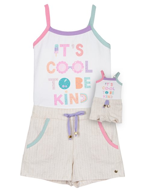 O Conjunto Infantil Marthie é a escolha perfeita para meninas que adoram brincar, combinar e se divertir com estilo! Com design moderno, confortável e cheio de charme, o look acompanha a roupinha da boneca perfeitamente combinando, garantindo ainda mais alegria e imaginação para o dia a dia.