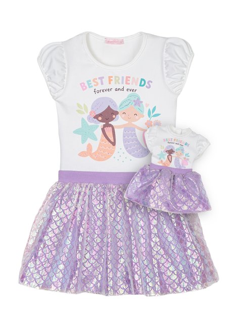 Conjunto Sereia Blusa e Saia Com Shorts- Menina e Boneca