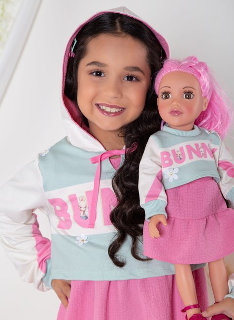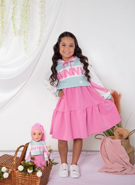Leve a fofura e o estilo para um novo nível com o nosso conjunto exclusivo “Bunny (Coelhinho)”, criado especialmente para encantar meninas e suas bonecas! Com uma combinação de cores suaves e detalhes delicados, esse look é perfeito para momentos especiais e brincadeiras cheias de imaginação!