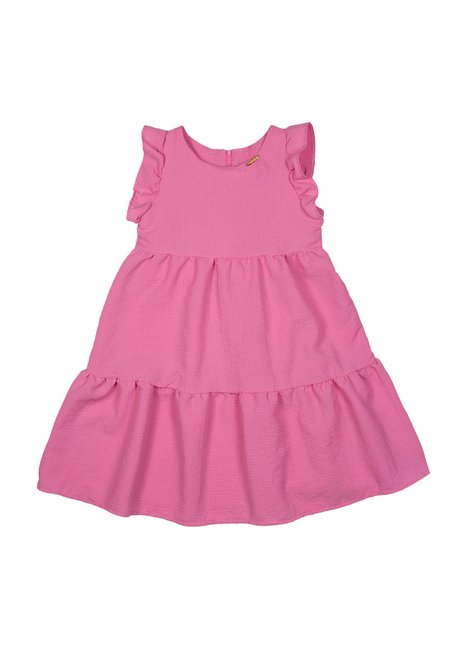 • Vestido rosa em tecido texturizado de alta qualidade, com caimento soltinho e confortável.