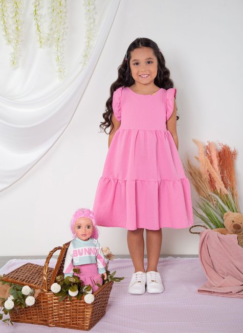 • Vestidinho rosa combinando com a roupa da menina.