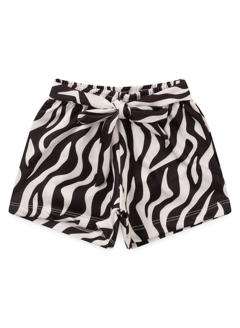 Shorts: Com estampa de zebra em preto e branco, possui um laço frontal decorativo e cós elástico, proporcionando ajuste perfeito e liberdade de movimento.