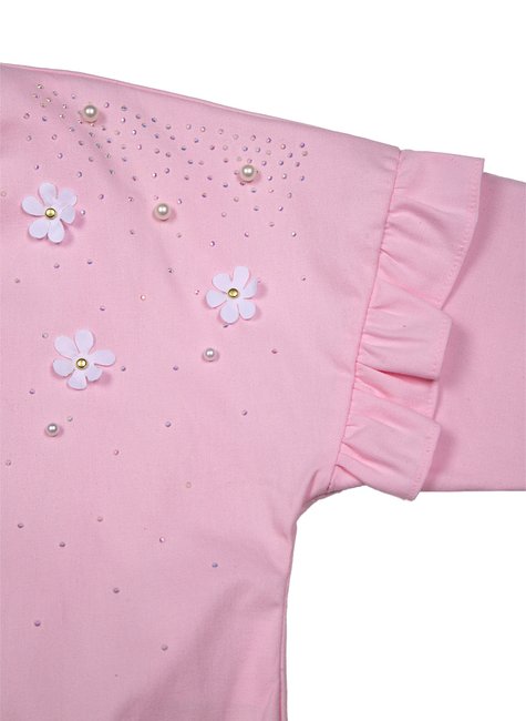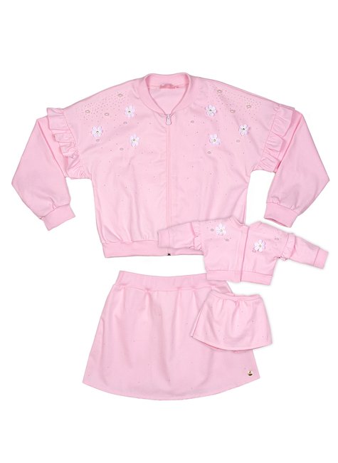 • Cores: O conjunto vem na cor rosa claro, com bordados florais delicados e aplicações sutis que realçam a feminilidade da peça.