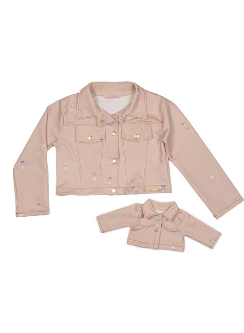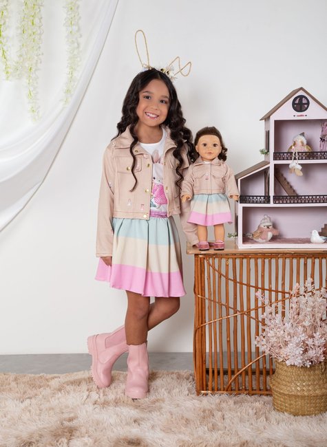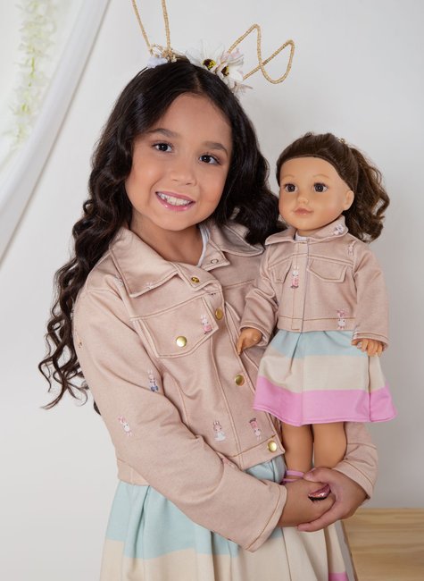 A grande surpresa desse conjunto é a versão miniatura da jaqueta para boneca, idêntica à original. Essa peça adicional permite que a criança combine seu look com o de sua boneca favorita, tornando a experiência ainda mais especial e divertida.