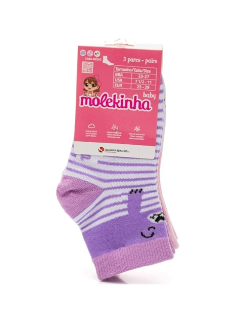 O Kit de Meias Molekinha Infantil é o complemento perfeito para os pezinhos cheios de energia das meninas. Confeccionadas com materiais macios e resistentes, essas meias proporcionam conforto e durabilidade ao longo do dia. Seu design simples e versátil permite combinações com diversos tipos de calçados e looks, enquanto sua qualidade garante a tranquilidade dos pais quanto à durabilidade do produto. Com o Kit de Meias Molekinha, as pequenas estarão prontas para brincar, correr e se divertir com todo o conforto que merecem!