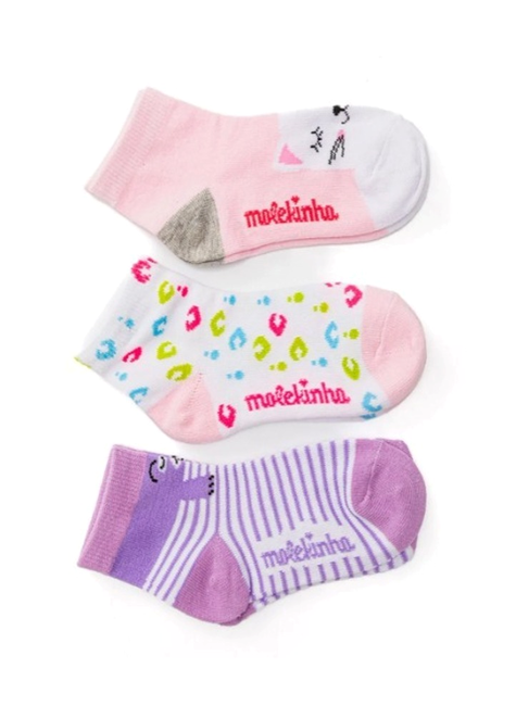 Kit Com 3 Pares de Meias Molekinha Gata/Onça/Urso
