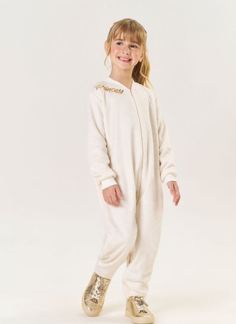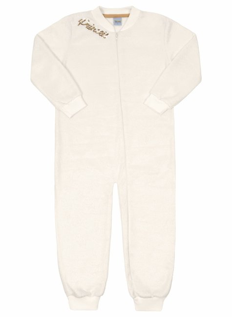 Macacão Infantil em Pelo Marfim – Com Zíper Frontal e Aplicação de Lantejoulas "Princess"