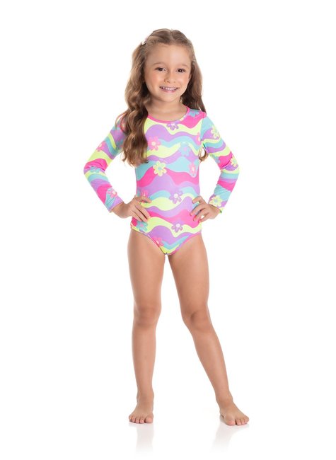 Manga Longa: O maiô com manga longa oferece uma cobertura adicional, protegendo os braços das pequenas contra a exposição solar e proporcionando maior conforto em dias mais frescos.