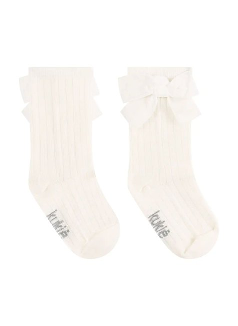 - Meia 3/4 Infantil Menina com Laço Veludo Branco Ku