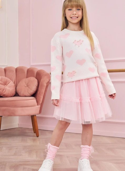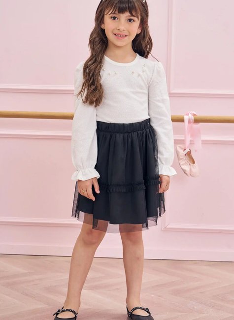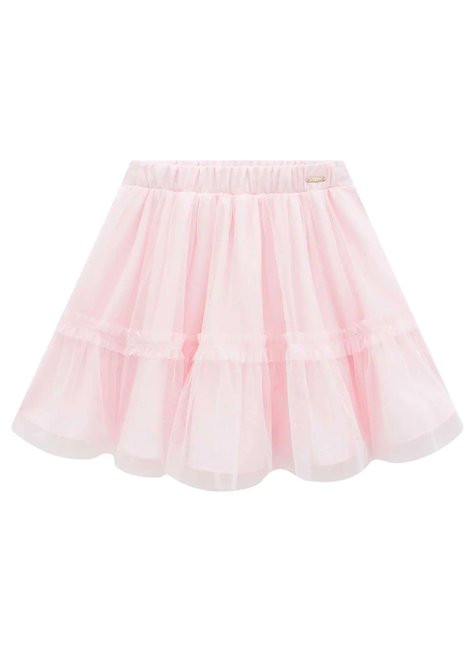 Saia em Tule com Elastano e Shorts Embutido Infantil Menina Infanti Delicada saia rodada confeccionada em tule com elastano. Possui detalhe de babado na barra deixando a peça ainda mais delicada. Cós com elástico embutido para maior conforto na hora de vestir. Aplicação de plaquinha exclusiva Infanti no cós. Detalhe de shorts embutido garantindo maior conforto e proteção para a menina aproveitar todos os momentos!