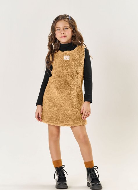 Perfeito para usar com meia-calça e botinhas, esse conjunto une o conforto do algodão com a fofura do pelinho. Ideal para ocasiões especiais ou passeios em família com muito estilo!