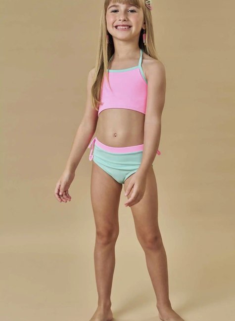 Trio Blusa Top e Biquini Rosa Neon-INFANTI
