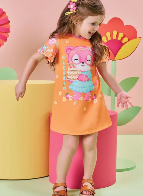 O vestido em malha fresh, é ideal para o dia a dia ou ocasiões especiais! Disponível em uma cor super estilosa - laranja - ele oferece conforto e leveza, perfeito para a sua pequena se movimentar livremente, proporcionando a combinação perfeita de estilo e conforto em uma peça só. A sublimação divertida, adiciona um charme especial à peça.