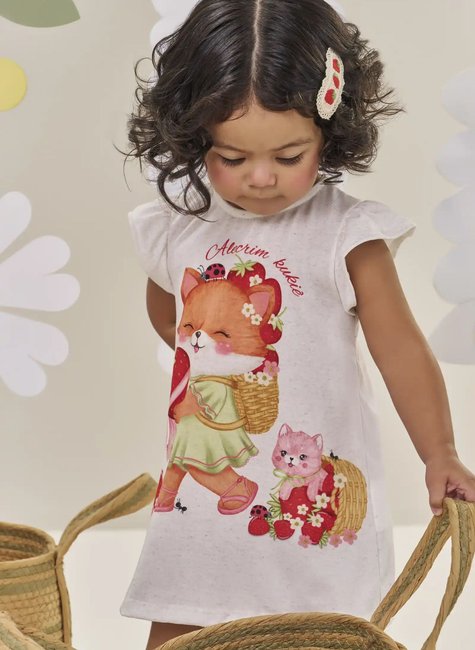 O vestido em malha power, prepara as meninas para o verão com muito estilo e conforto! Disponível em uma cor super estilosa - bege - este vestido é perfeito para os dias quentes e cheios de aventura, garantindo a combinação perfeita de delicadeza e conforto! A sublimação divertida, adiciona um charme especial à peça.