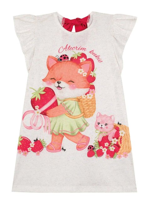 Vestido Baby em Malha Bege com Vermelho Alecrim Kukiê