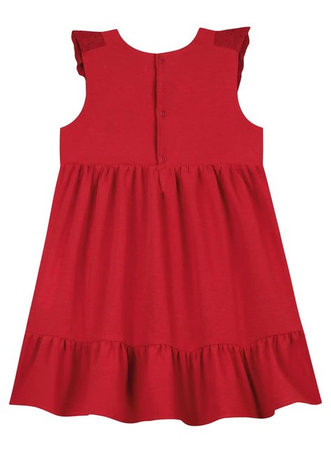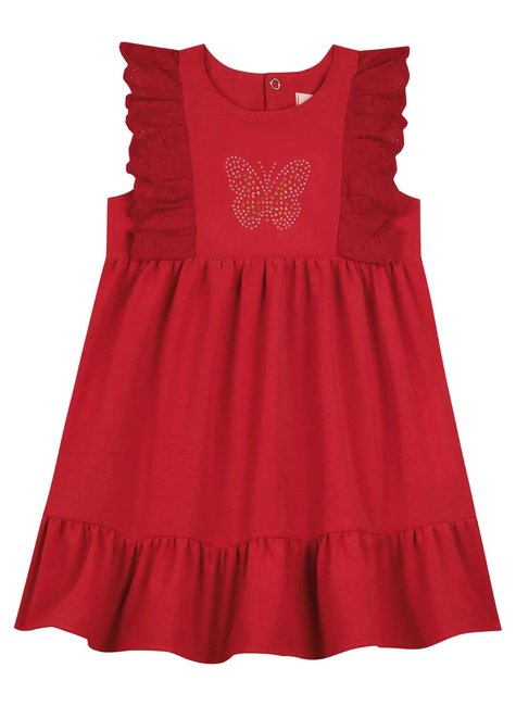 O vestido e calcinha em tecido crepe, prepara as meninas para o verão com muito estilo e conforto! Disponível em uma cor super estilosa - vermelho - este vestido é perfeito para os dias quentes e cheios de aventura, garantindo a combinação perfeita de delicadeza e conforto! A aplicação de strass em formato de borboleta, adiciona um charme especial à peça.