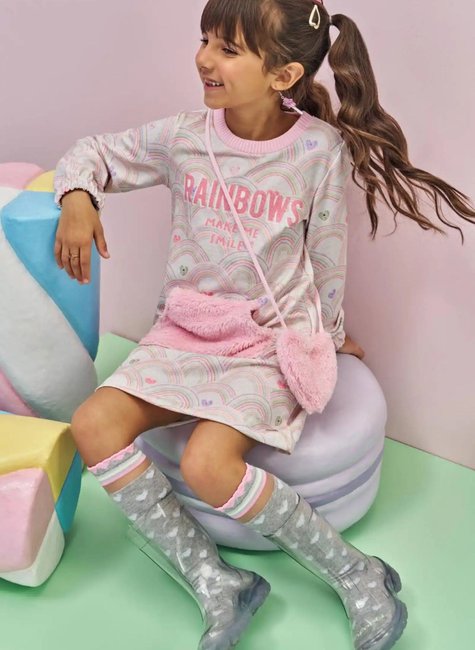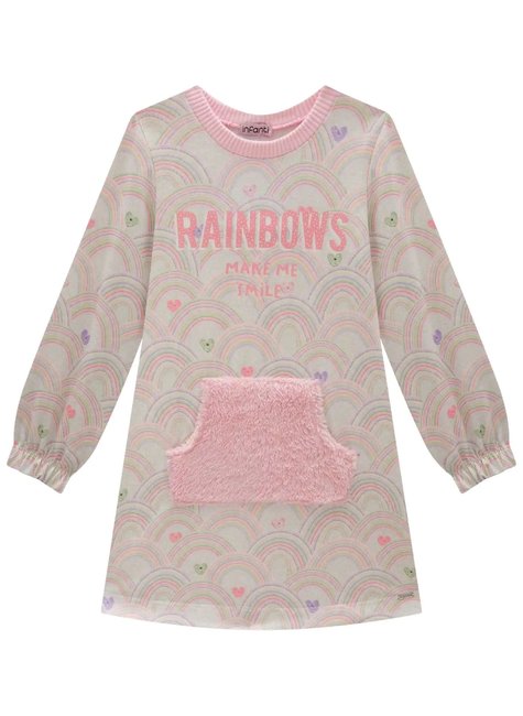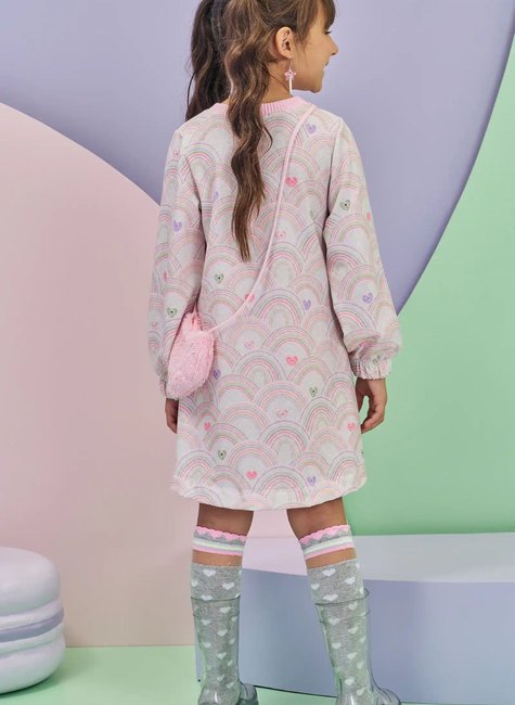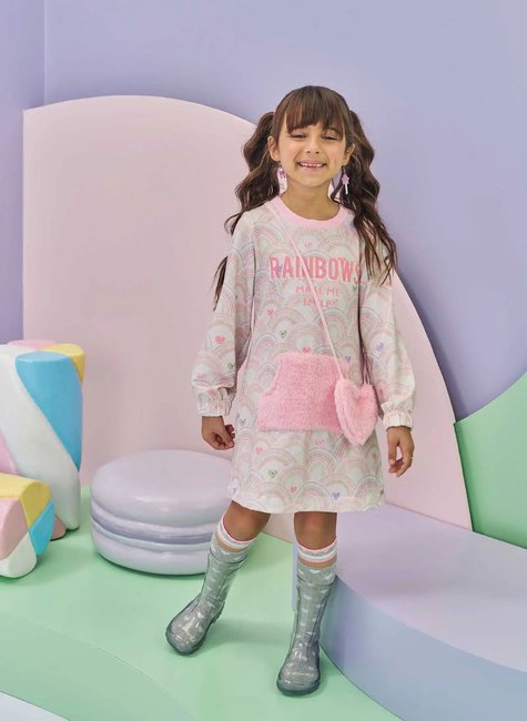 Vestido Infantil Infanti Arco-Íris com Bolsa Coração – Conforto, Estilo e Encanto em um Só Look!
