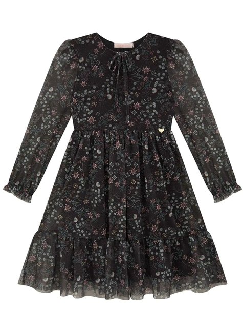Vestido em tule com elastano Infantil Menina Kukiê O vestido infantil em tule com elastano é a peça perfeita para deixar as pequenas radiantes em qualquer ocasião. Combinando o toque sofisticado do tule com o conforto e a flexibilidade do elastano, ele garante um caimento impecável e liberdade de movimento. Disponível em duas opções encantadoras de cores uma com fundo preto e estampa floral delicada e outra com fundo rosa e estampa de corações este vestido é ideal para aniversários, festas e momentos especiais que pedem um look mágico e cheio de personalidade. Combine com sapatilhas ou mocassin, além de uma tiara decorada ou presilhas para completar o visual.