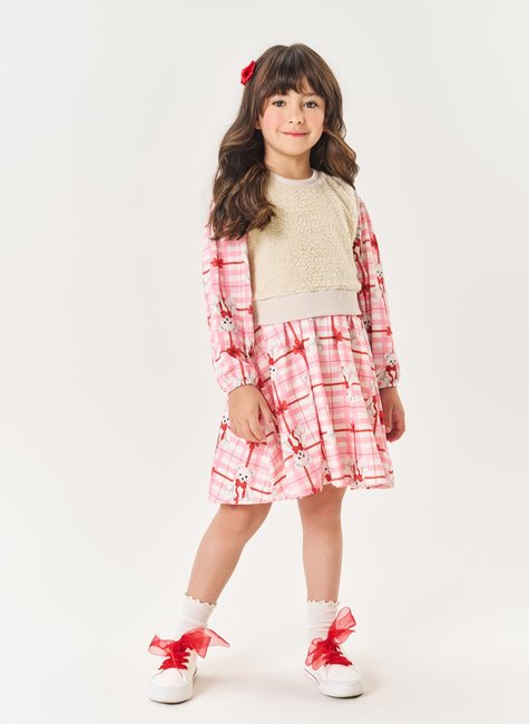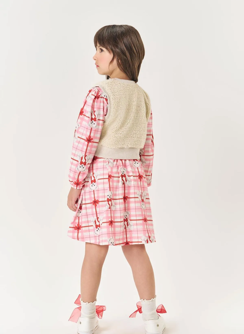 O colete em pelo carneirinho adiciona um toque aconchegante e fofinho à produção, com uma plaquinha decorativa acima da barra em ribana, trazendo um detalhe de sofisticação e charme. Ideal para looks casuais e cheios de personalidade, esse conjunto une conforto, estilo e delicadeza, perfeito para o dia a dia!