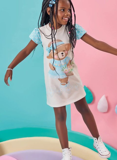 Vestido Ursa Infantil Menina em Molecotton Kukiê- Verão 26