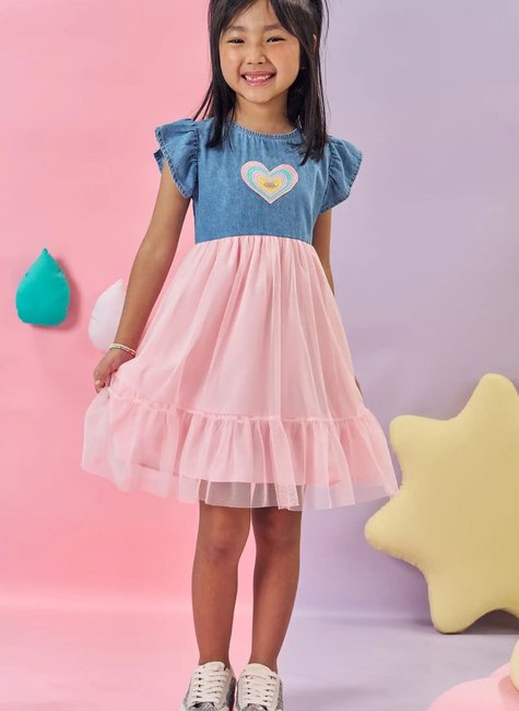 O vestido em jeans com elastano e tule, é ideal para o dia a dia ou ocasiões especiais! Disponível em uma cor super estilosa - rosa - ele oferece conforto e leveza, perfeito para as meninas se movimentarem livremente, proporcionando a combinação perfeita de estilo e conforto em uma peça só. O patch termocolado adiciona um charme especial à peça.