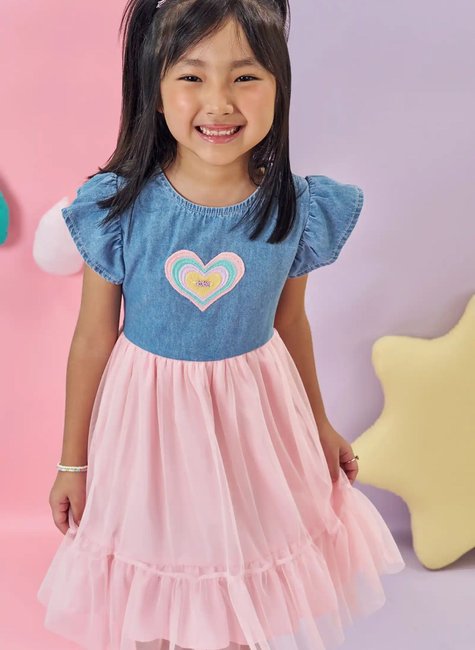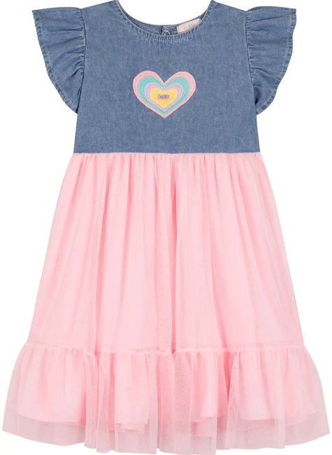 Vestido Jeans com Tule Rosa -Kukiê
