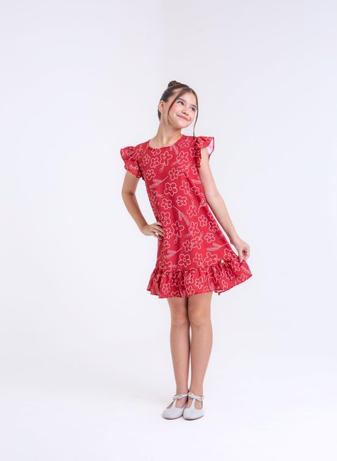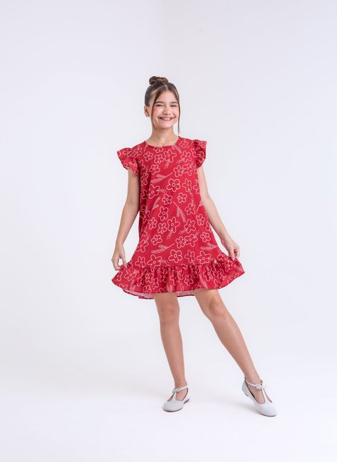 Este modelo de vestido infantil em vermelho exala charme e elegância, perfeito para ocasiões especiais ou até para o dia a dia de quem ama um visual marcante. A base vermelha vibrante realça a estampa de flores delicadas espalhadas por toda a peça, criando um contraste encantador. As flores aparecem em tons variados, como branco, rosa e amarelo, trazendo suavidade e feminilidade ao vestido, enquanto o fundo vermelho oferece um toque de alegria e vivacidade.