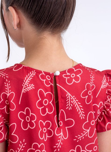 Vestido Luna Vermelho com Florsinhas