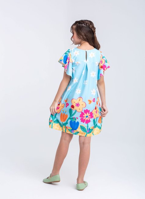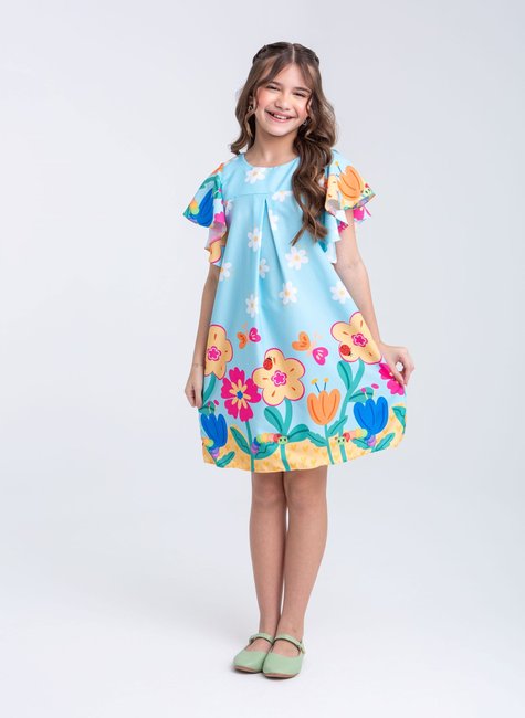 A estampa floral vibrante, com cores alegres e detalhes de borboletas, cria um visual encantador e divertido. As mangas com babados acrescentam charme extra, tornando o vestido perfeito para festas, passeios ou momentos especiais. Com este modelo, sua pequena estará pronta para brilhar em qualquer ocasião!!