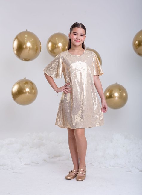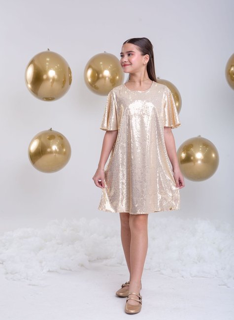 Vestido Infantil em Paetê Dourado - Sofisticação e Brilho para Festas