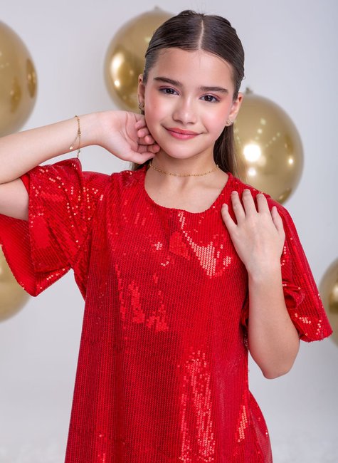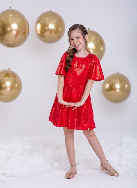 Vestido Infantil em Paetê Vermelho - Brilho e Estilo para Festas