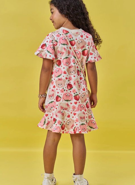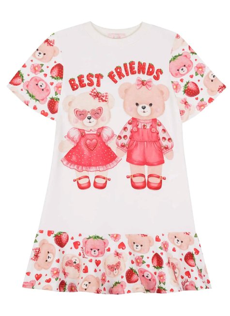 O vestido em molecotton, é ideal para o dia a dia ou ocasiões especiais! Disponível em uma cor super estilosa - vermelho - ele acompanha uma bolsa e oferece conforto e leveza, perfeito para as meninas se movimentarem livremente, proporcionando a combinação perfeita de estilo e conforto em uma peça só. A sublimação divertida e o strass, adicionam um charme especial à peça!